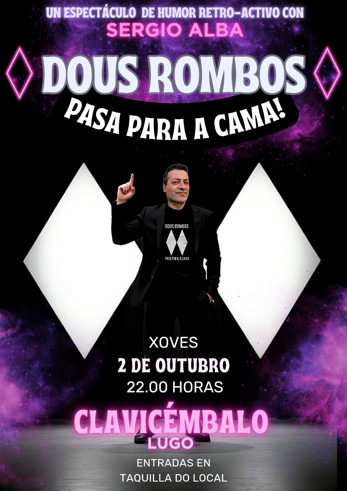 Sergio Alba, presenta o espectáculo de humor "Dous rombos... Pasa para a cama" Un show no que o pasado, estará moi presente. É inevitable, co paso dos anos, botar a vista atrás e reconfortarse na felicidade vivida nas nosas idades máis tempranas. Pero, o certo é que ademais de fermosas lembranzas, hai tamén moitas cousas […]